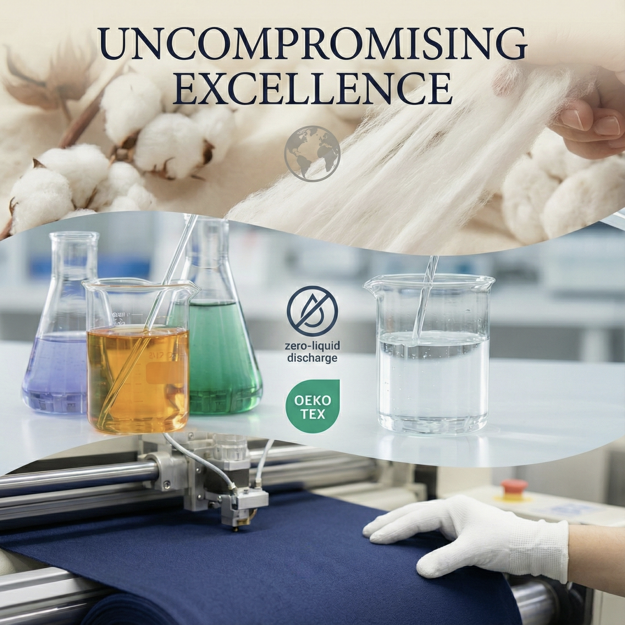 Oeko-Tex certified dyes and zero-liquid discharge systems.